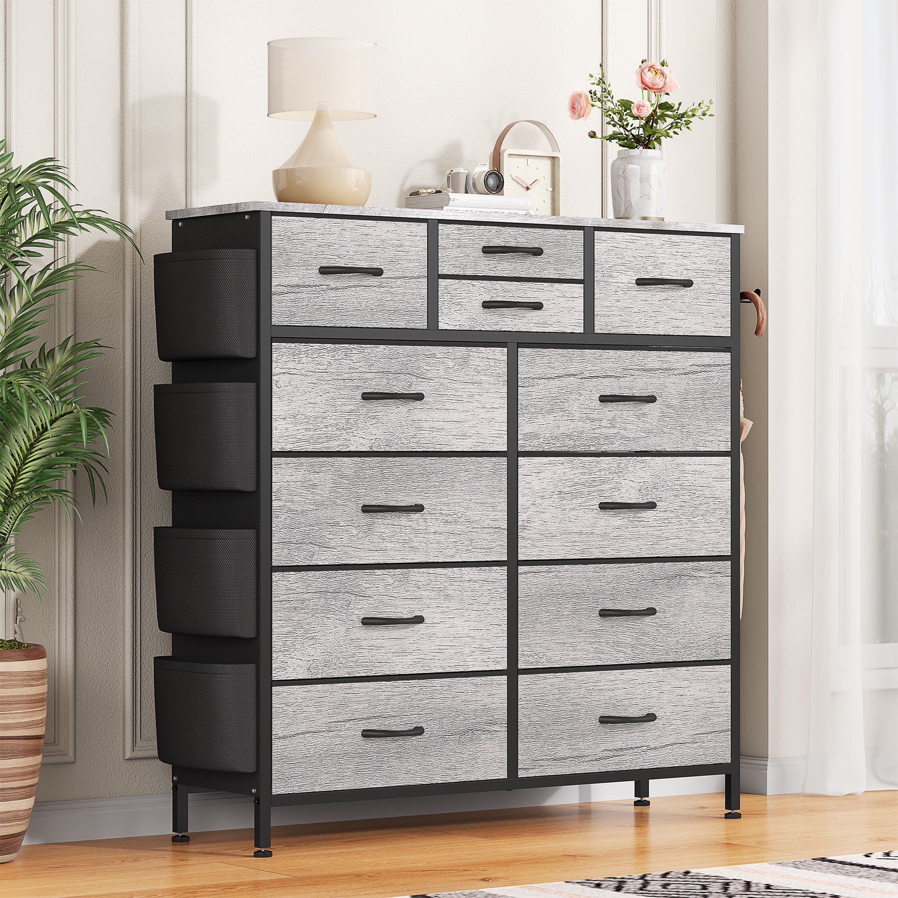Aowos modern dresser chest of drawers, 12 drawers minimalist chest of drawers for bedroom. Features adjustable feet and a wall mount for added security and stability. Perfect for storing sportswear, blankets, scarves, socks and other clothes or household items, with 8 large, 2 medium and 2 small drawer sizes to suit your storage needs. Sturdy and reliable construction includes a waterproof top, waterproof MDF wood worktop and sturdy steel frame. Large work surface, 38.8" top surface provides plenty of room to decorate with your favorite decorations. Seamlessly integrated, ideal for foyers, bedrooms, living rooms, nurseries, hallways, offices and more. Simple and fashionable designs can be adapted to different styles of homes, suitable for living rooms, bedrooms, dressing rooms, hallways, and other places. With the installation guide, it is easy for you to complete the installation process