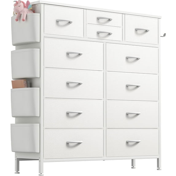 Aowos 12 Fabric Drawer Dresser for Bedroom Chest of Drawers with Wooden Top, White