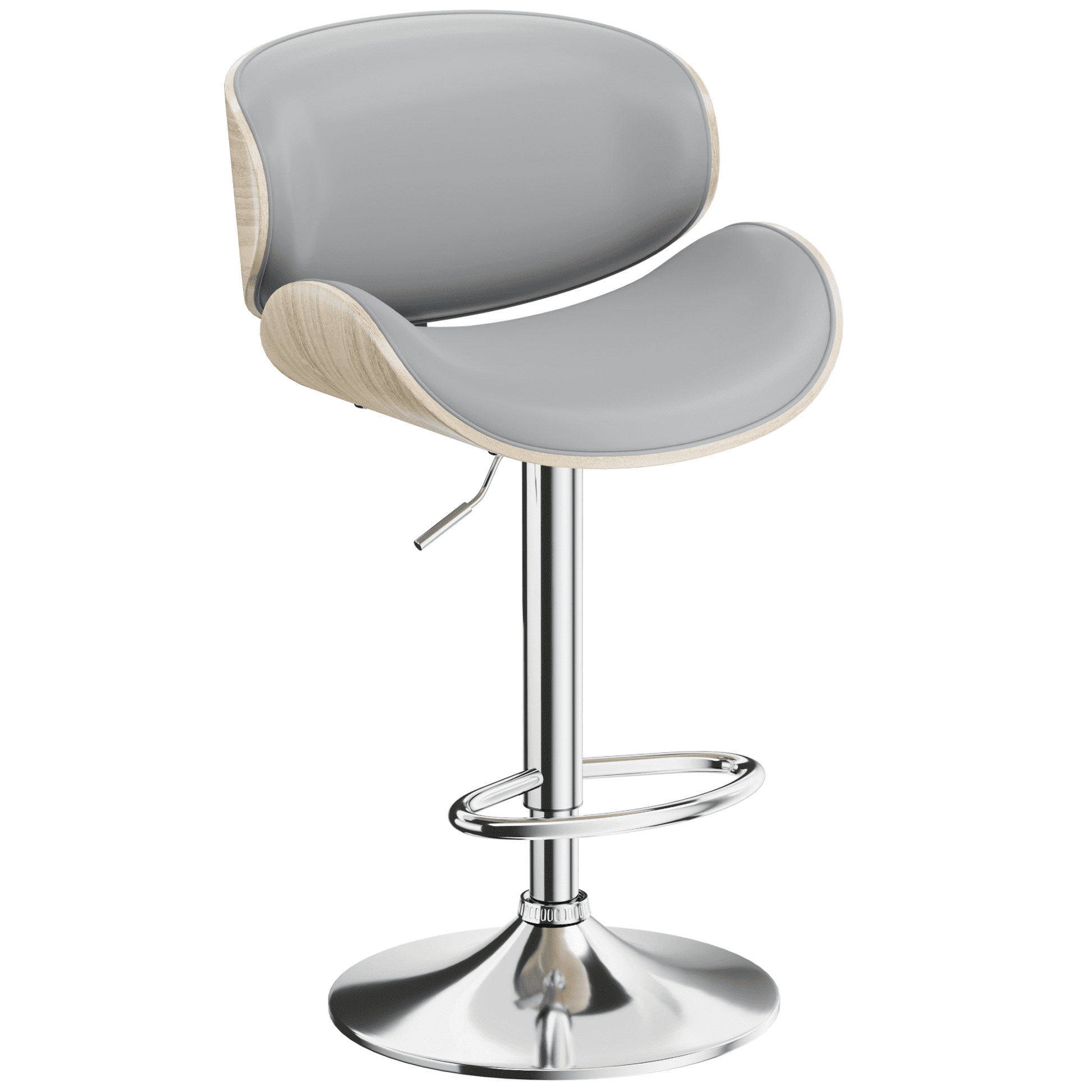 Aowos Bar Stools Adjustable Swivel Barstools Counter Stools with Back, Mid-Century Modern PU Leather Upholstered Counter Height Barstools, Kitchen Island Bar Chairs, Gray