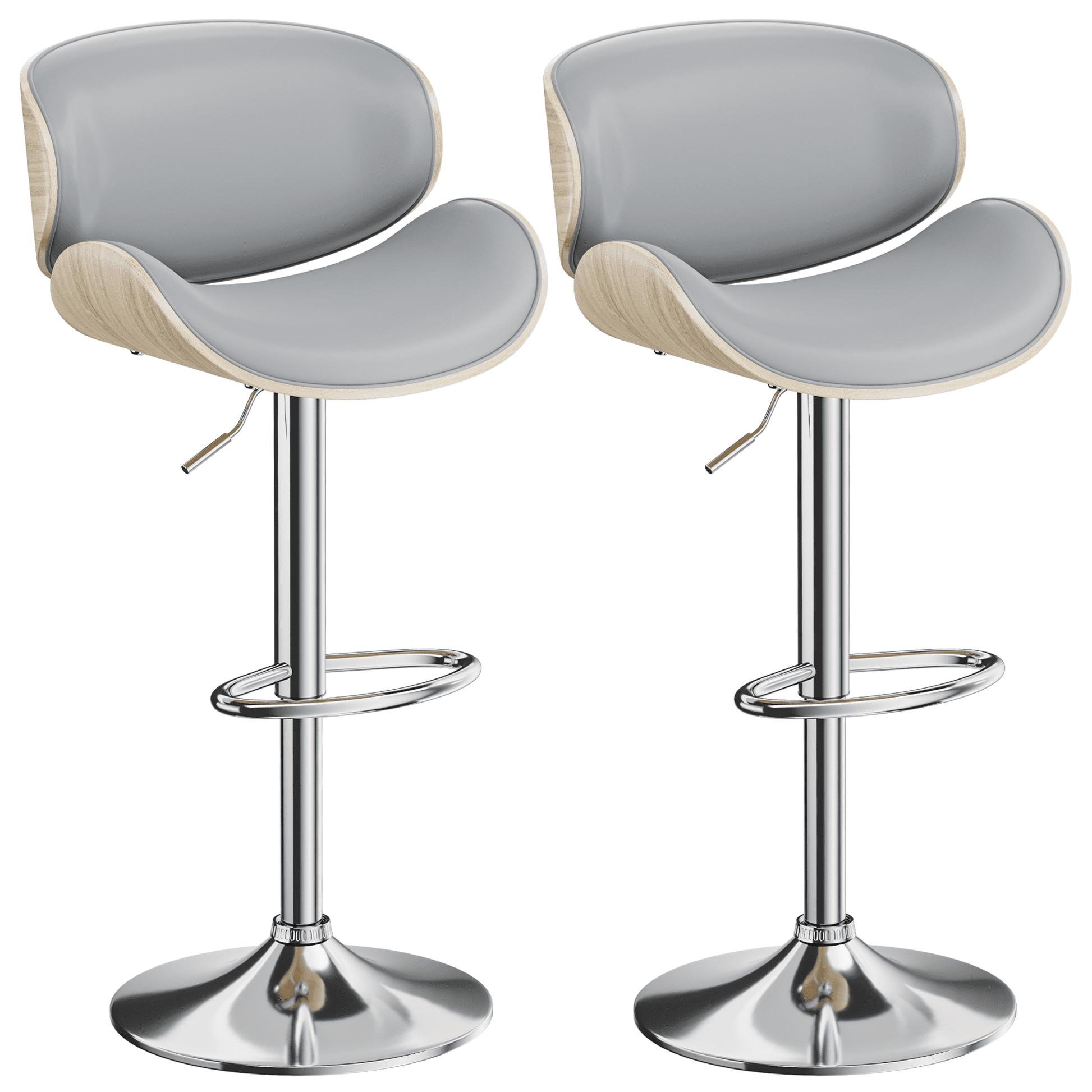 Aowos Bar Stools Adjustable Swivel Barstools Counter Stools with Back Sets of 2, Mid-Century Modern PU Leather Upholstered Counter Height Barstools, Kitchen Island Bar Chairs, Gray