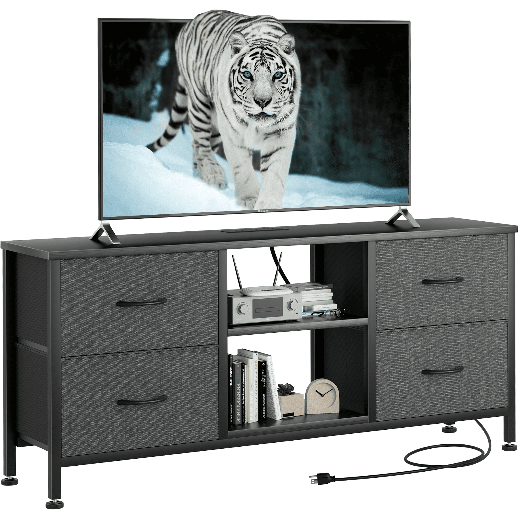 GIKPAL 4 Drawers Dresser TV Stand, Dressers for Bedroom Chest of Drawers with Charging Station for TVs up to 50", Gray