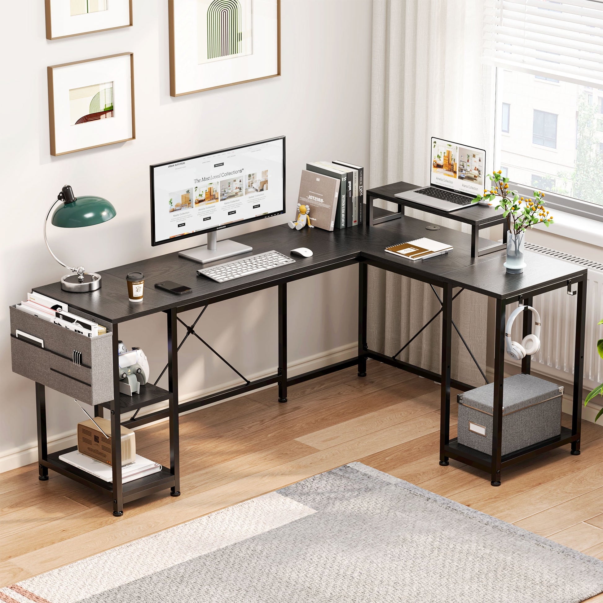 If you want a high-quality computer desk, then this computer desk from GIKPAL is an excellent choice for you. This desk comes with a built-in power cord and includes built-in power outlets and USB ports. It is also UL certified. Featuring two drawers and two-tier storage shelves. This home office desk provides enough storage space to organize all your office supplies or gaming items. We also specially prepared two headphone hooks. In addition, this writing desk also comes with a monitor stand and a CPU stand. Made with a sturdy metal frame and P2-grade wood panels, the desk also features an X-shaped structure on the back for added stability and durability. This is a quality you deserve!