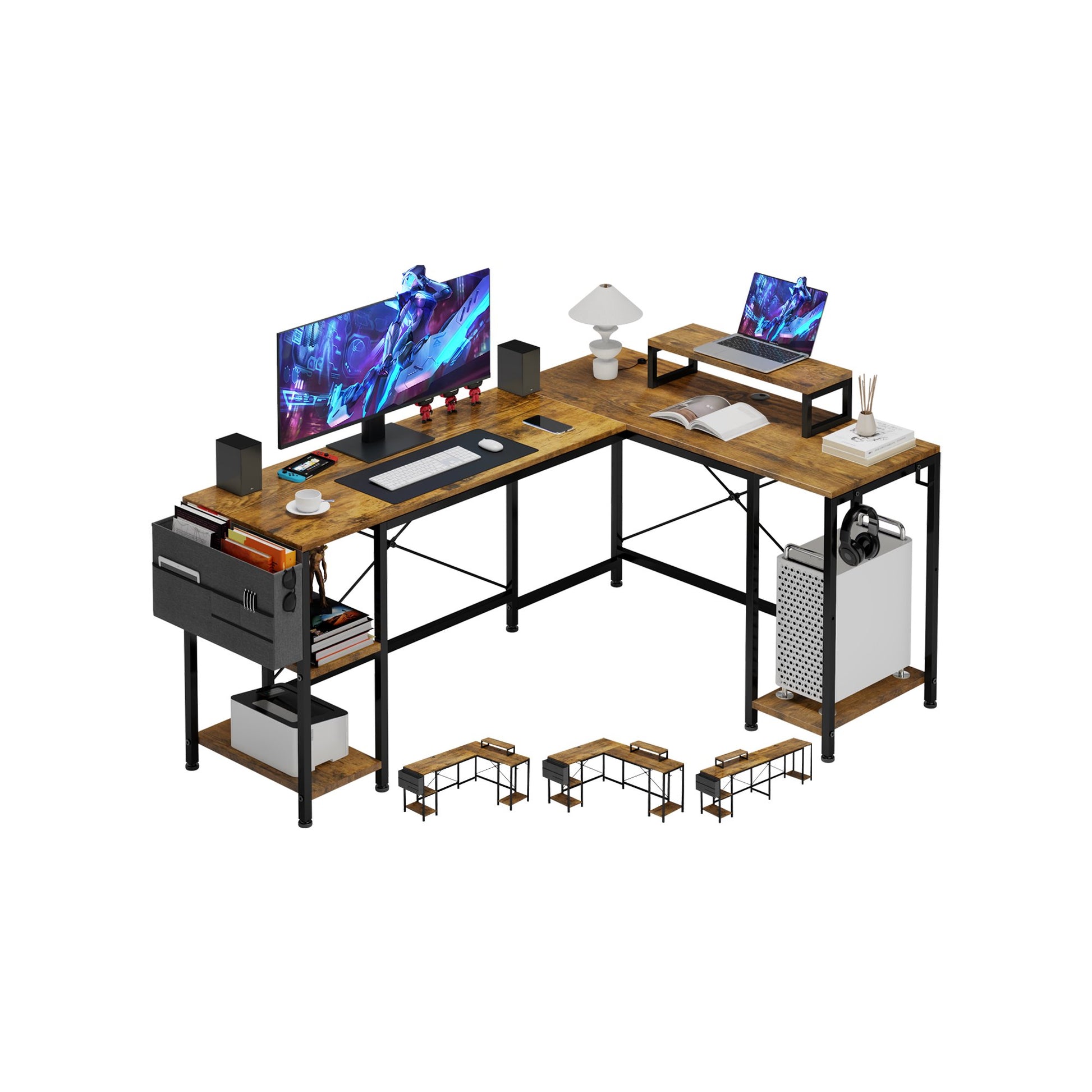 • REVERSIBLE L SHAPED DESK: With reversible design, this home office desk can be installed in 2 directions according to your needs, good choice for your bedroom, study and office. The L shaped design suits for corner space perfectly.