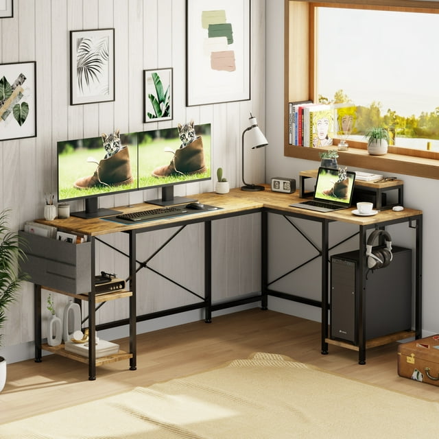 • Computer Desk With Storage:The shelves under the desk have a symmetrical structure design with 3-piece shelves. The computer host can be placed on either side according to the needs. The other side has two layers for placing home office items, thereby freeing up more desktop space. Two Side hooks keep your headphones and other gaming devices within easy reach.