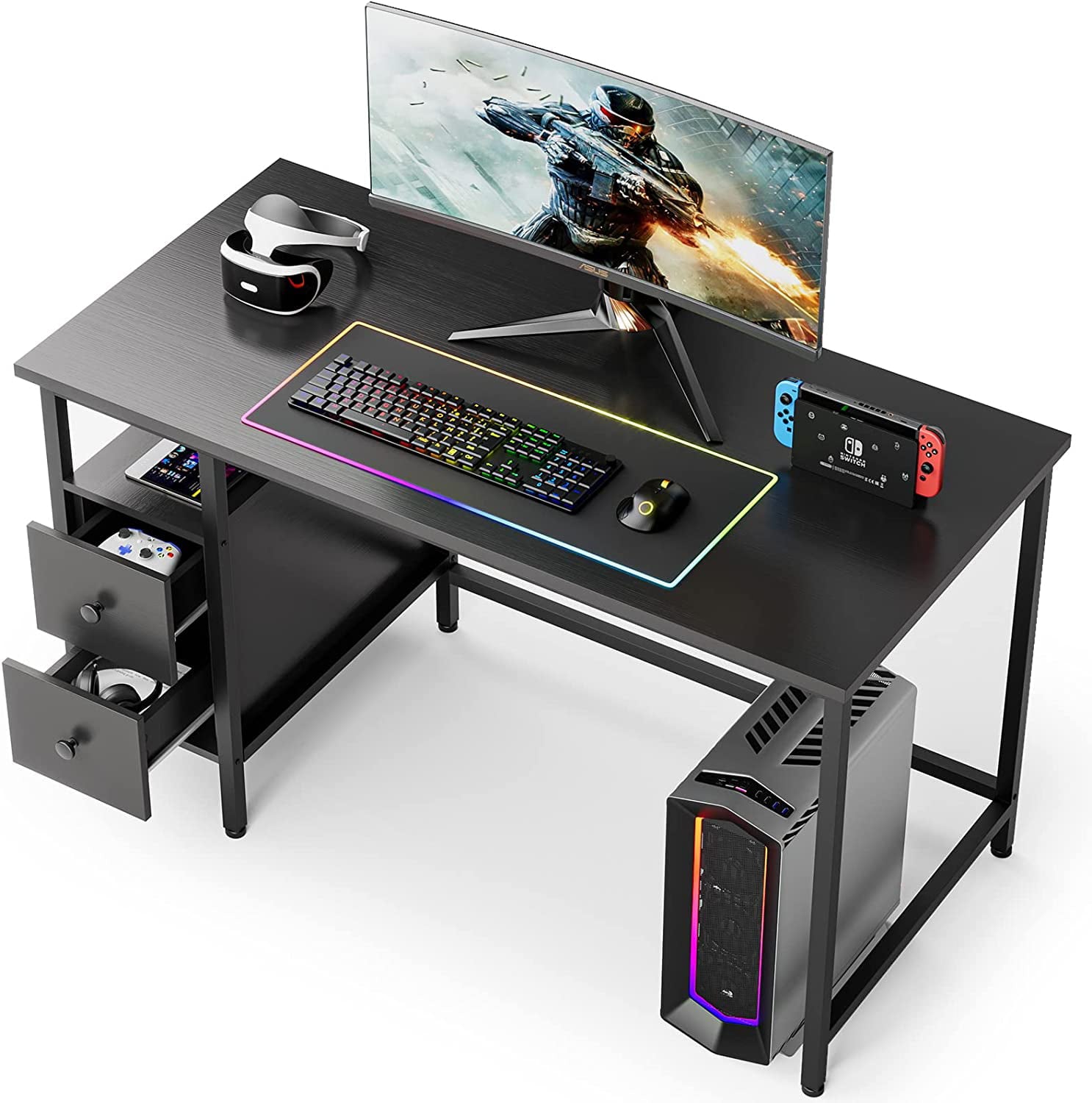 GIKPAL Computer Desk, Office Desk with Drawers 47" Study Writing Desks for Home with Storage Shelves, Desks for Home Office, Black