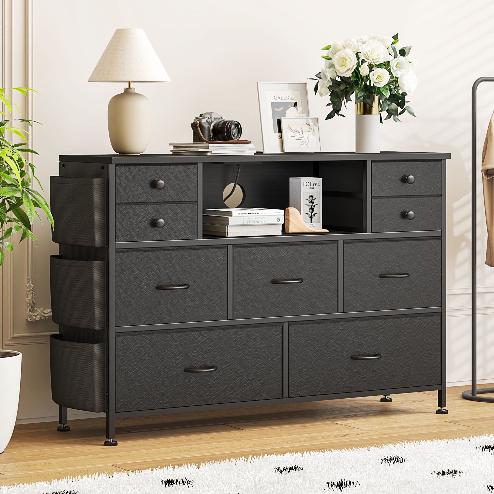 • Versatile Storage Solution: This TV stand dresser for bedroom features 9 drawers, 3 side pockets, you can store everything you frequently use when you have this long dresser. 9 Drawer Dresser is the perfect storage solution for your home. Use it as a media console behind a sofa, as an entertainment stand, as a display stand, as a foyer stand, and as a 50" TV stand in living rooms, bedrooms, closets, and hallways. We look forward to unlocking more scenarios for your enjoyment.