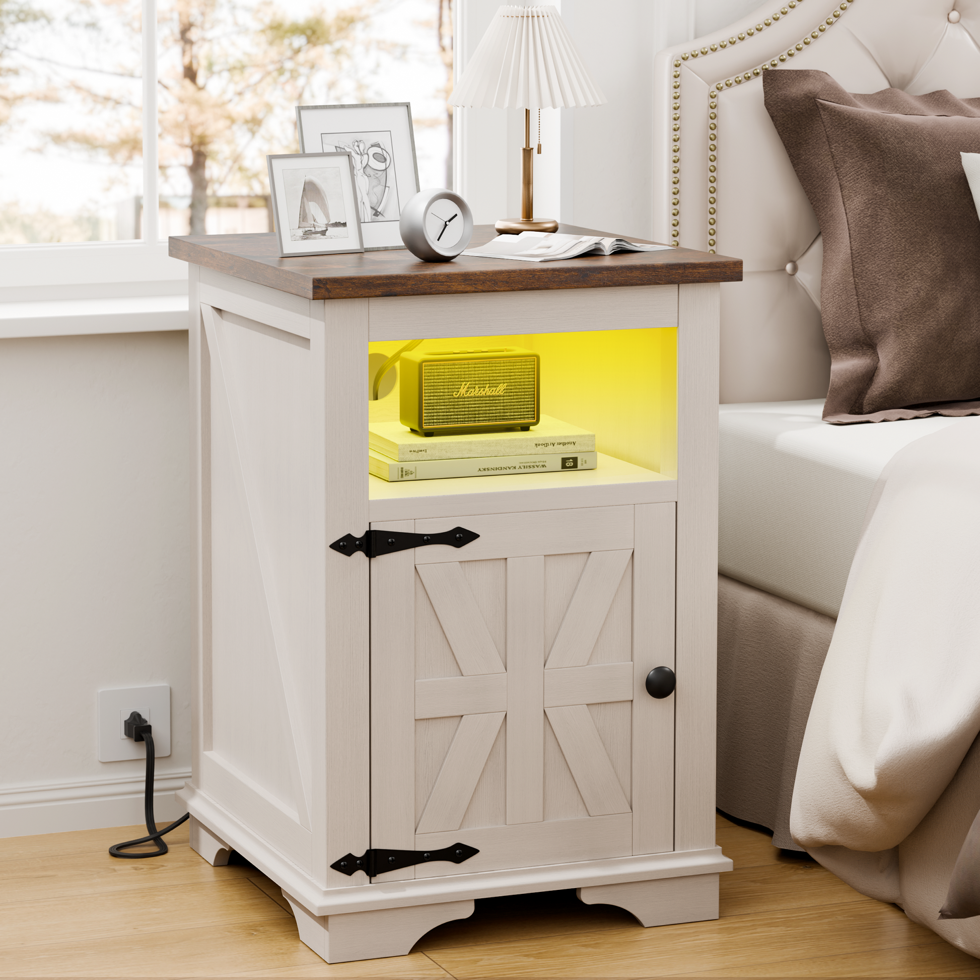 GIKPAL Farmhouse Nightstand with Charging Station for Home Bedroom Living Room, Rustic Metal Wood End Table, Side Table, Beige