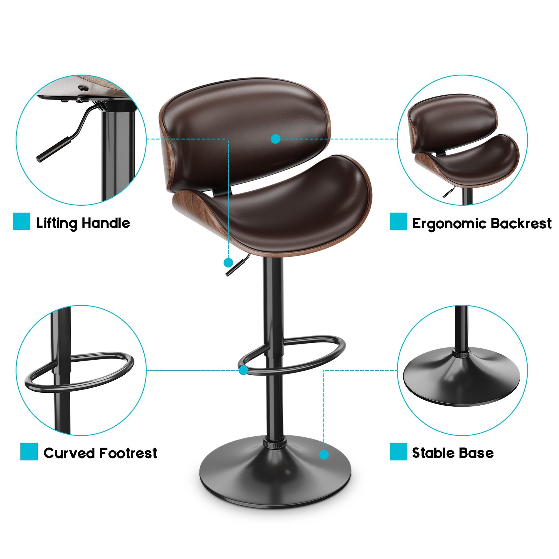 ONME Bar Stools Set of 2, Bentwood Adjustable Height Swivel Bar Stools
